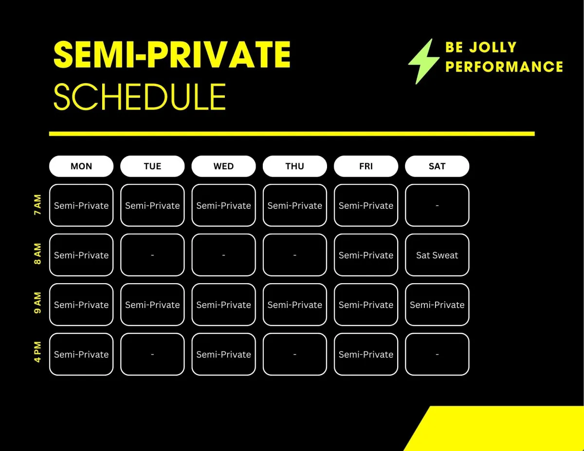 At Be Jolly, we keep you accountable and focused on your fitness journey. You set your goals, and we work 1-1 with you to ensure you reach them, providing the support and motivation you need every step of the way.